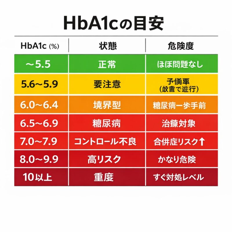 HbA1cとは、血糖値とは違い、過去1〜2か月の血糖値の平均を反映する指標です。